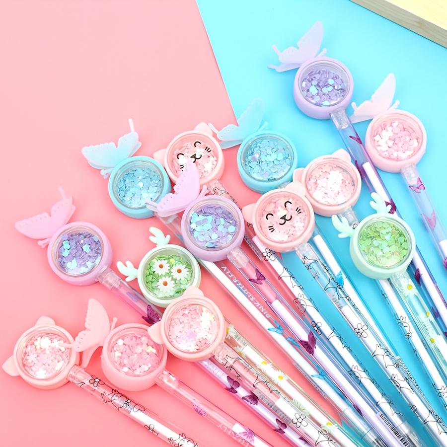 10/20pcs Sparkling Butterfly & Flower Gel Pens – Assorted Colors, Pastel Design with Glittery Butterflies & Flowers, Perfect for Valentine’S Day Gifts and Party Favors, School Supplies | Playful Design | Sparkling Effect, Cute Pen
