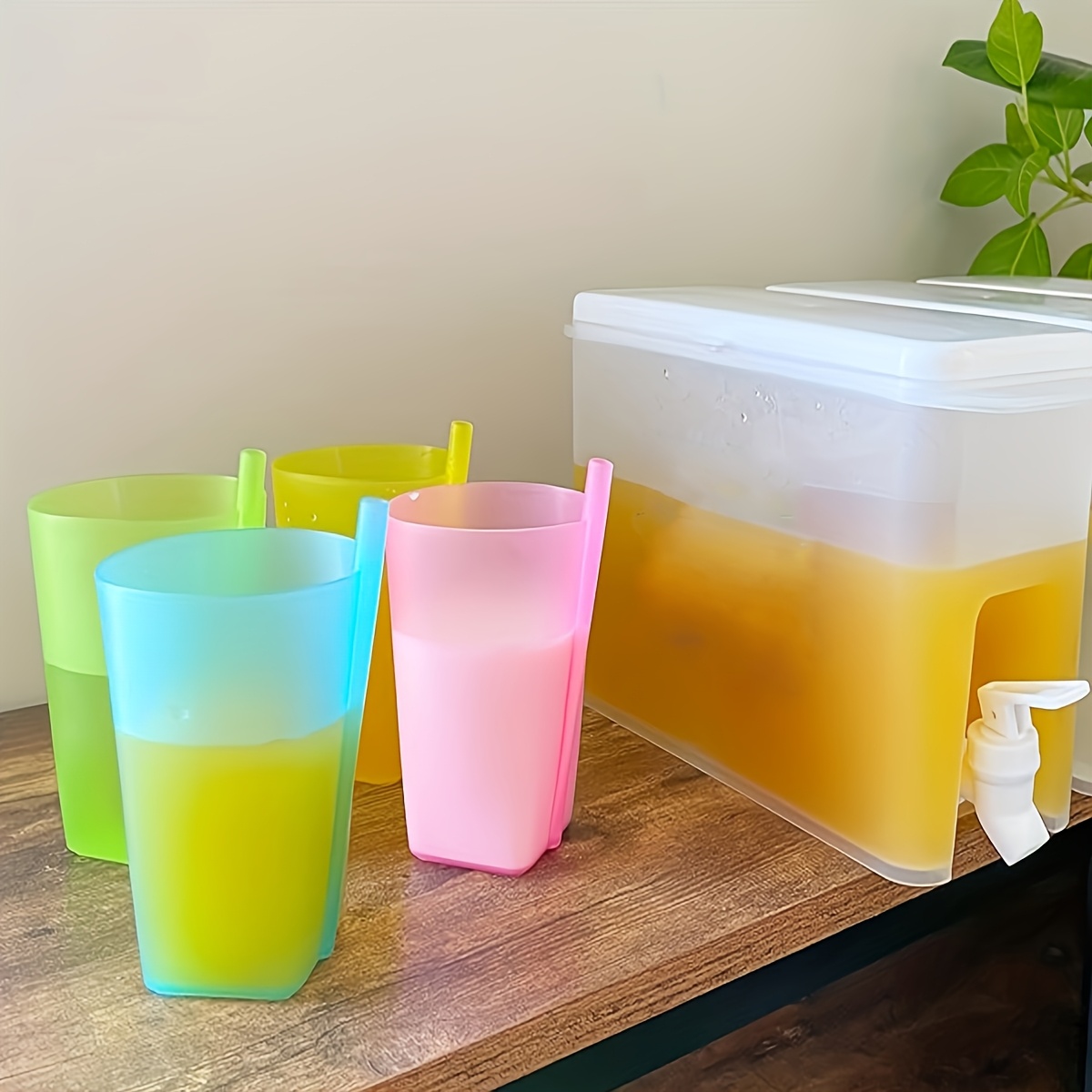 Stay cool and hydrated in style with this 4-piece set of Integrated Straw Cups, perfect for summer drinks, school, parties, and outdoor adventures. Each cup holds 360ml and features a built-in straw for convenient, mess-free sipping. Lightweight, colorful, and reusable, these cups are ideal for juice, water, smoothies, and festive gatherings.