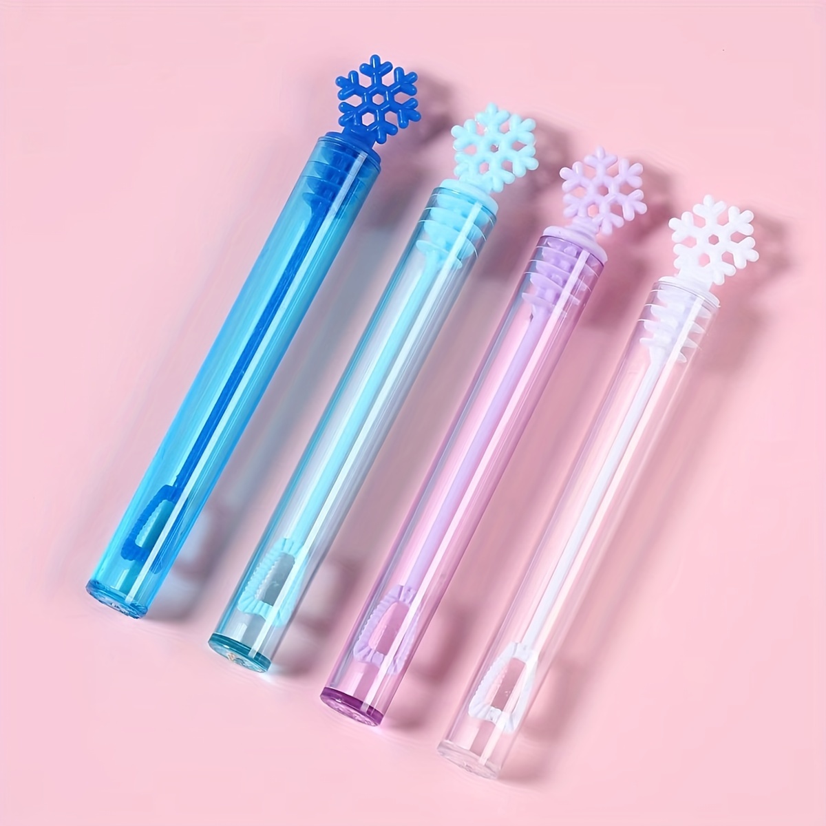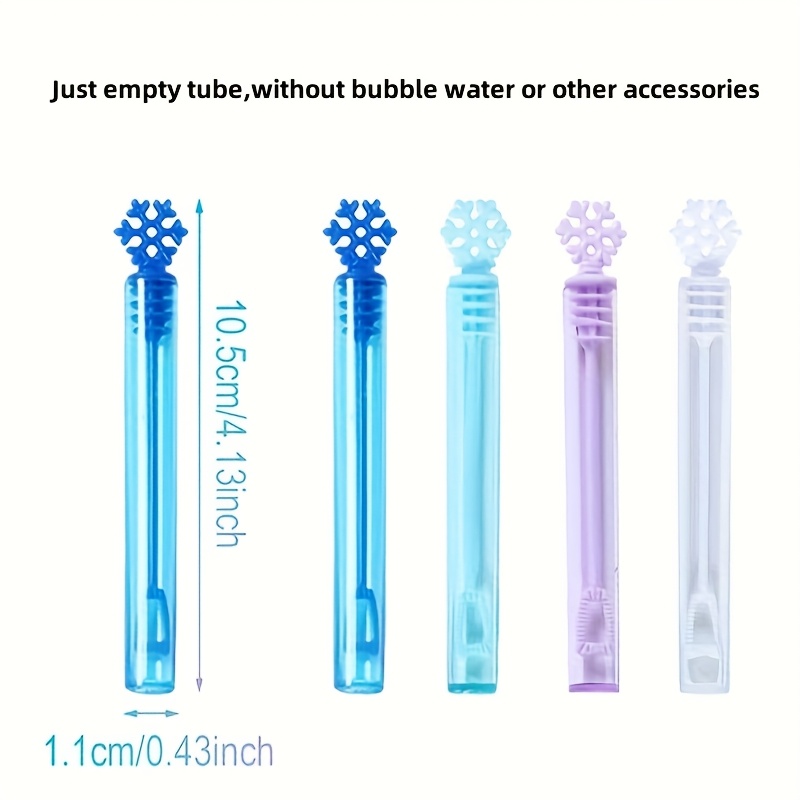 Each wand features a detailed snowflake topper and a clear plastic tube, ready to be filled with your favorite bubble solution (not included). These reusable bubble blowers are lightweight, durable, and safe for all ages – making them a great party favor, stocking stuffer, or winter activity for kids.