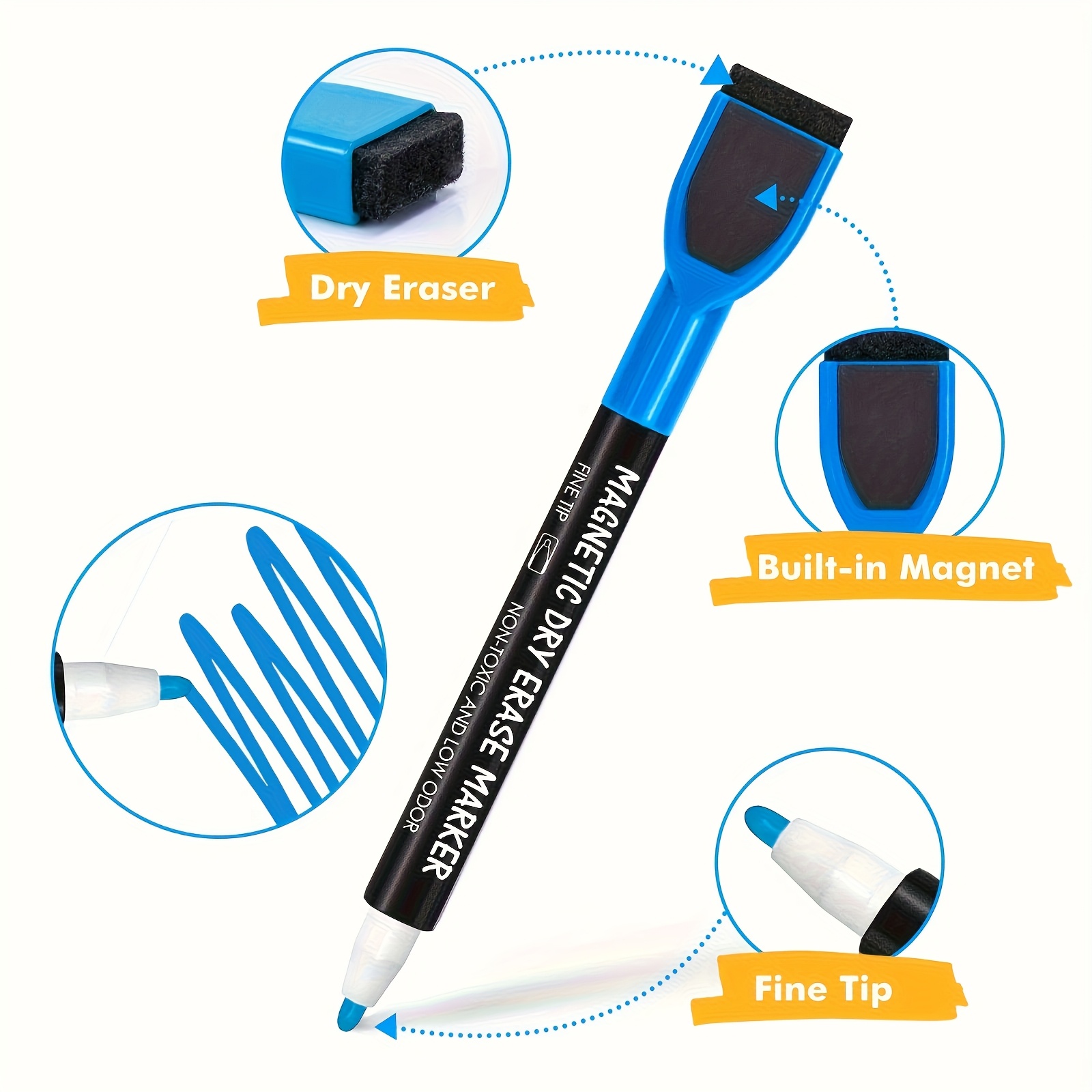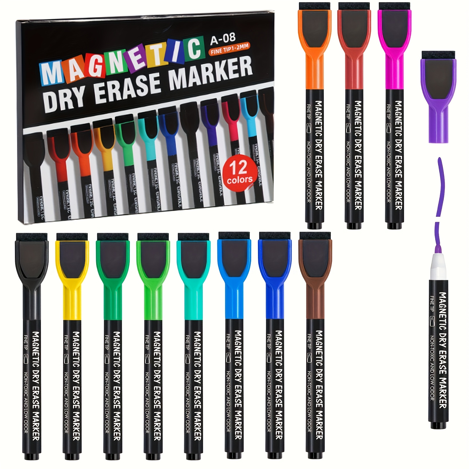 12-Pack Magnetic Dry-Erase Markers with Built-In Erasers – Fine Tip & Vibrant Ink