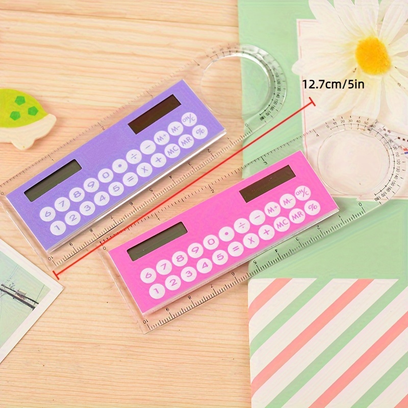 1pc Solar Mini Calculator with 10cm Ruler – Compact & Colorful!