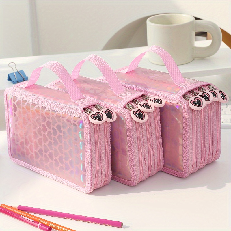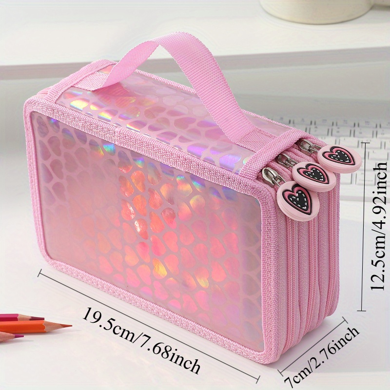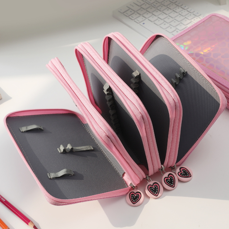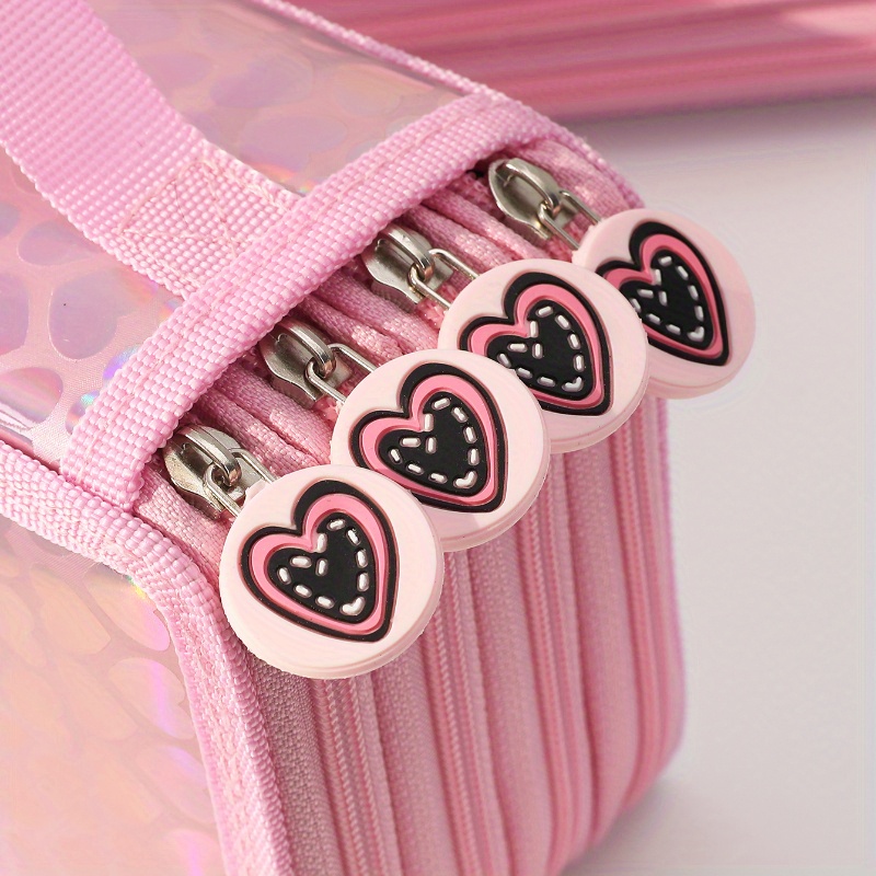 Add a touch of charm to your stationery collection with this stylish and multifunctional heart-shaped pencil case. Designed in a trendy Korean aesthetic, this pink zipper bag is perfect for organizing and storing your pens, pencils, markers, erasers, and other small supplies.