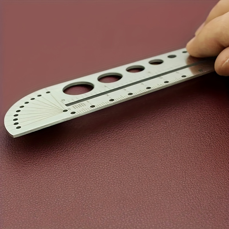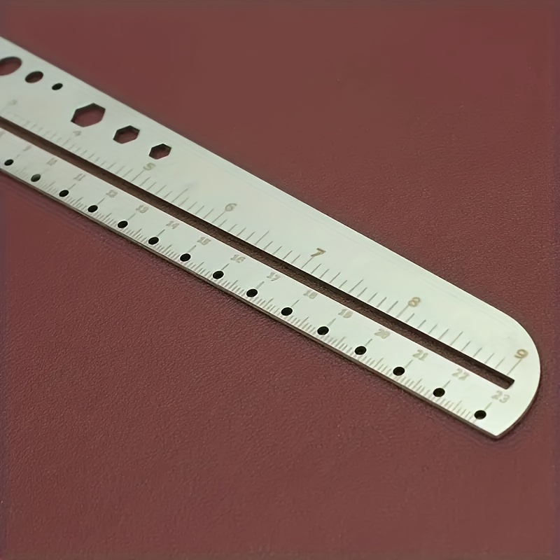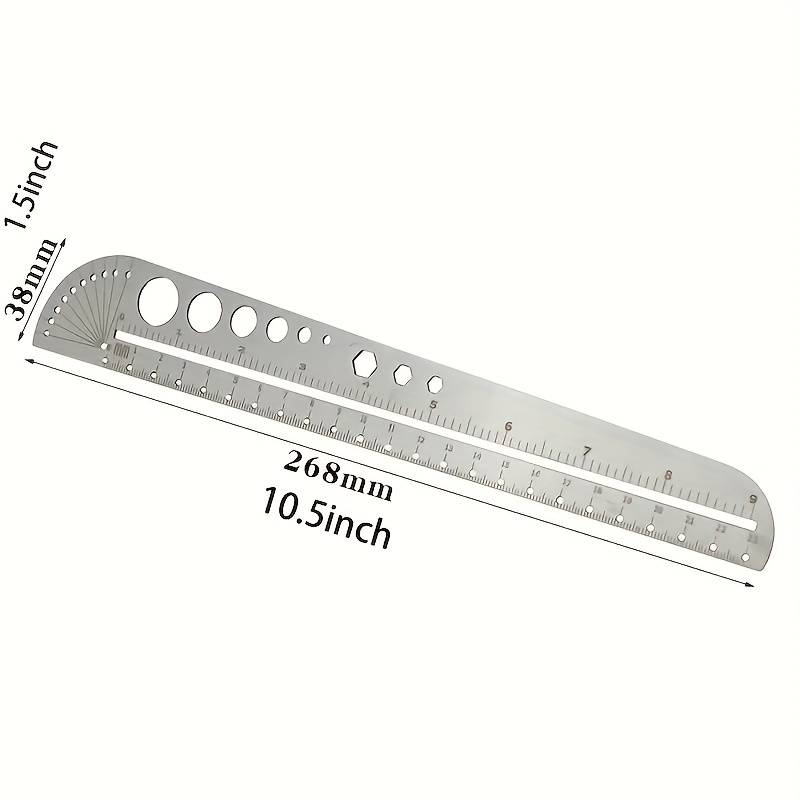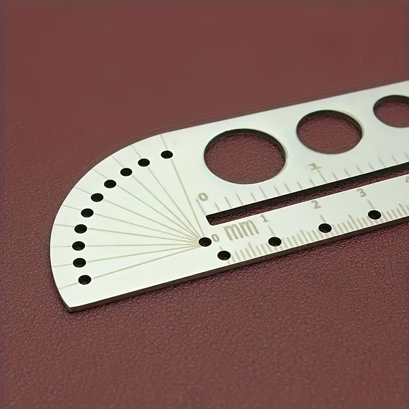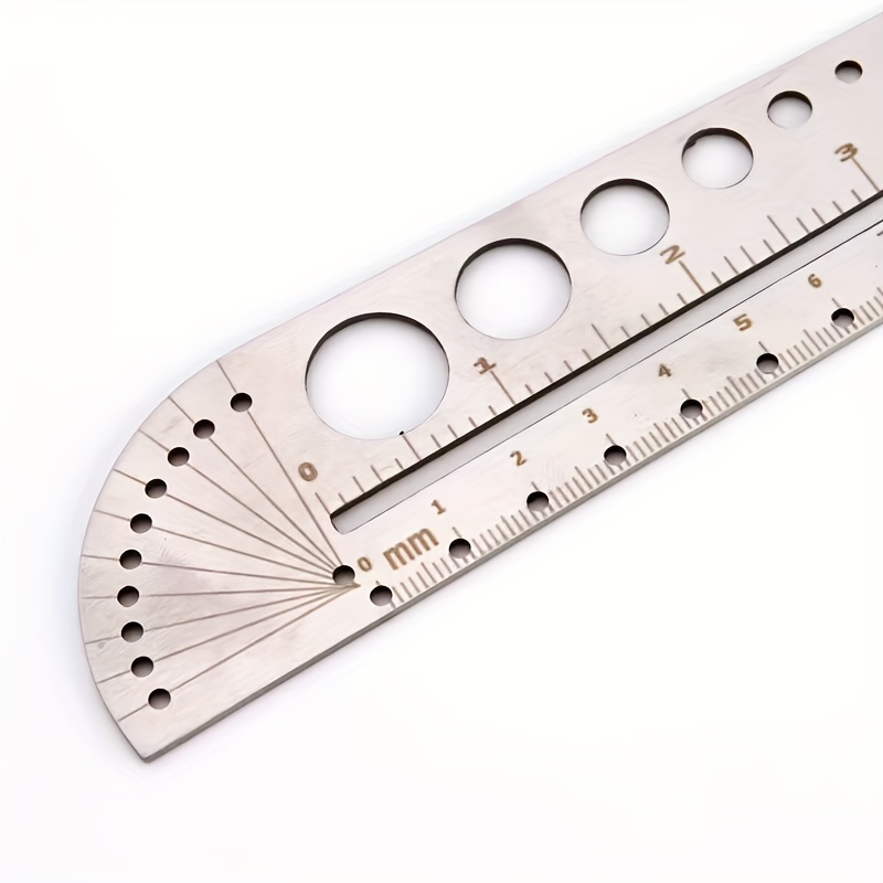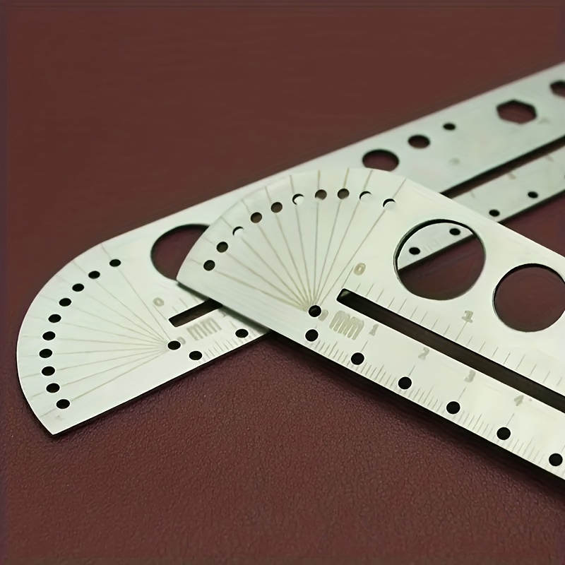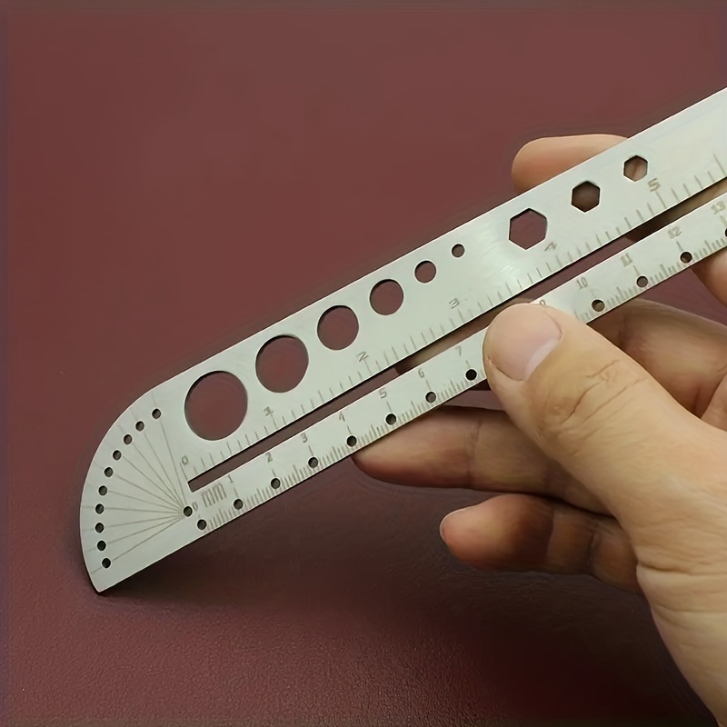 Upgrade your toolkit with this multi-functional stainless steel profiled ruler, expertly designed for precision, durability, and versatility. This all-in-one measuring tool combines the functionality of a ruler, protractor, compass, and hex wrench in a sleek, compact form – perfect for office use, outdoor tasks, or leather crafting projects.
