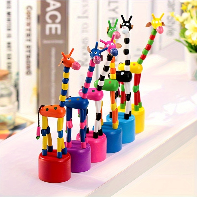 1pc Wooden Giraffe Dancing Puppet – Spring-Loaded Push-Up Toy for Kids
