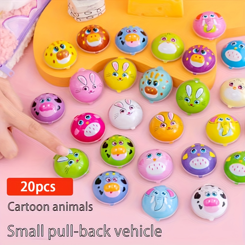 This 20-pack of Mini Animal Pull-Back Cars is the perfect blend of fun, value, and cuteness! Each toy features a colorful animal design with a simple pull-back mechanismโjust pull them back and watch them race forward! Great for party favors, classroom treasure boxes, carnival prizes, and more.