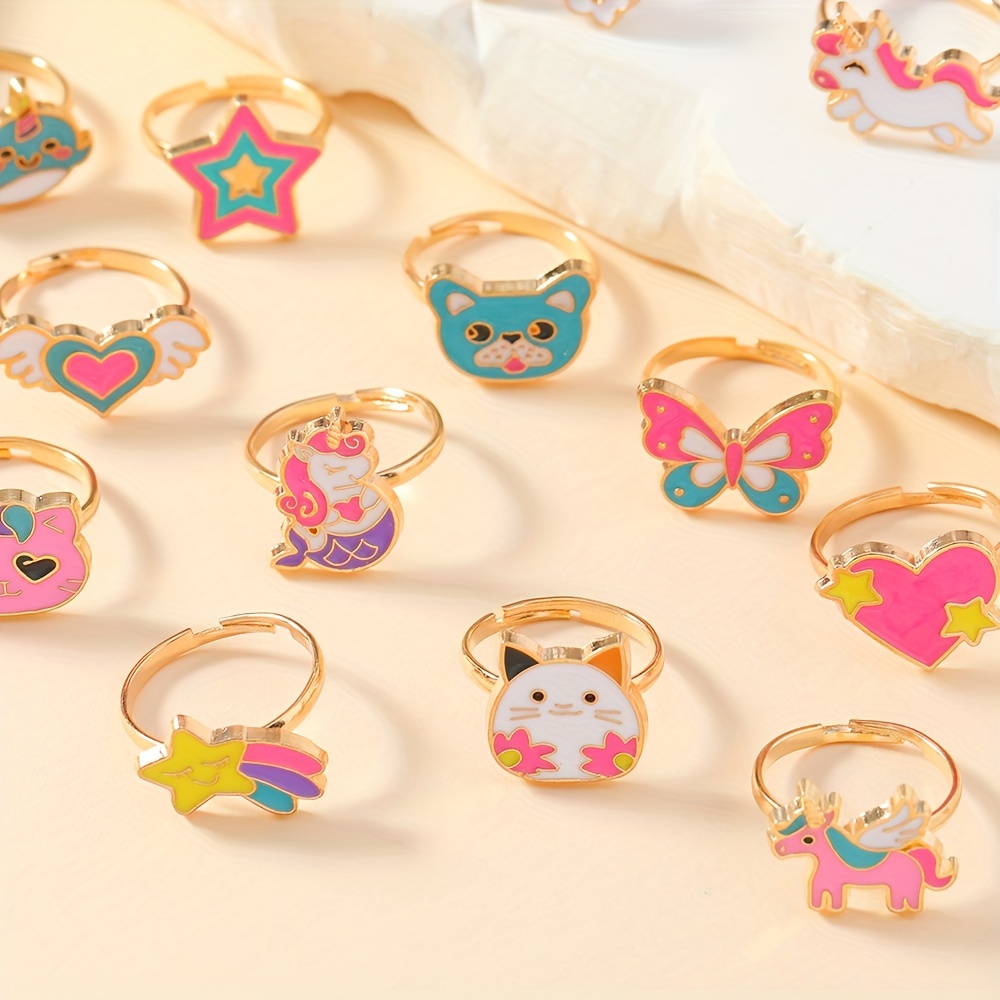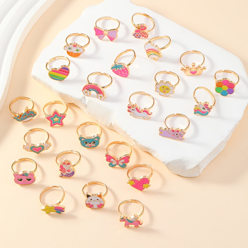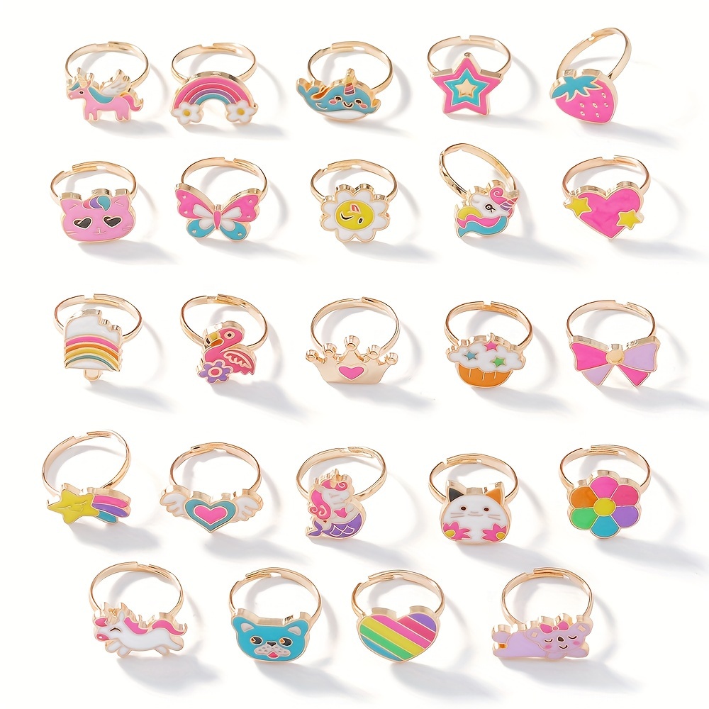 Add sparkle and smiles to any occasion with this 24-piece set of adorable youngsters’ rings! Featuring macaron-inspired candy colors and delicate designs, these rose gold-tone zinc alloy rings come in a lovely heart-shaped box, making them perfect for birthday parties, party favors, or everyday dress-up fun.