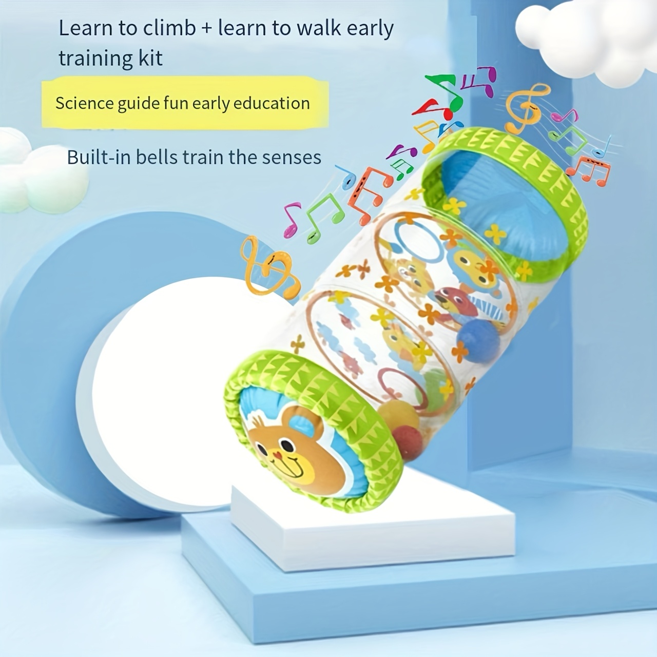 - 2 Fun Toys in 1 Set – Includes a rolling tambourine and a ball, both designed with cute animal shapes to attract attention.