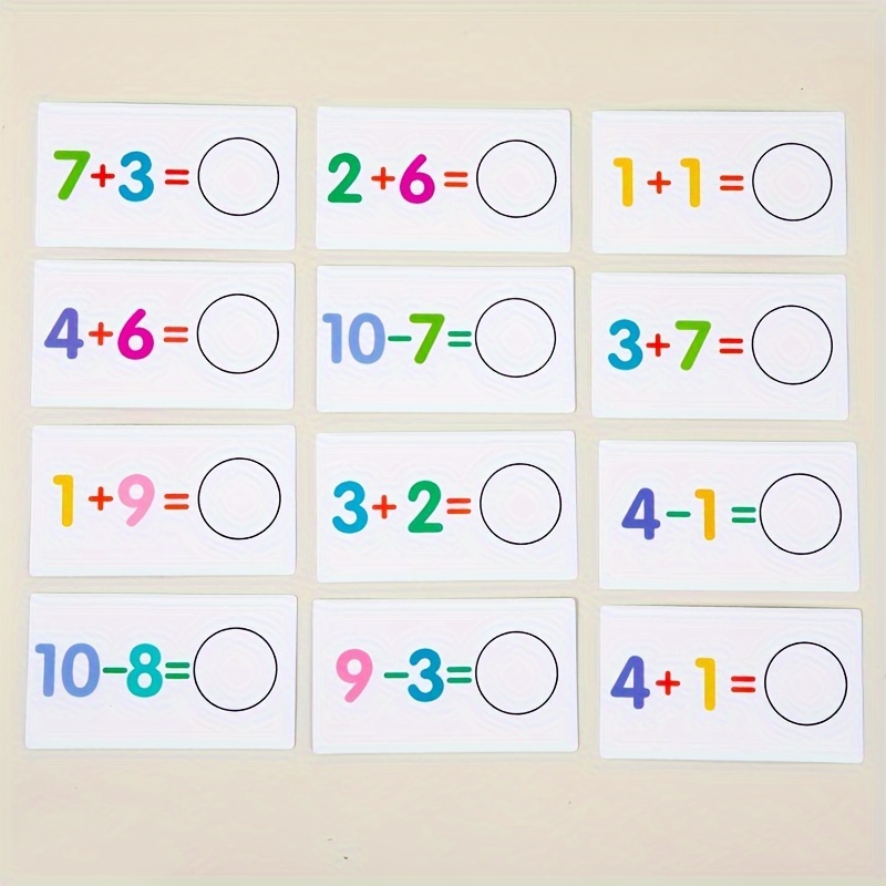 46-Card Set Early Learning Math Addition & Subtraction Flashcards – Fun and interactive way to introduce toddlers and preschoolers to basic math concepts. Designed with bright colors and durable material to keep young learners engaged.