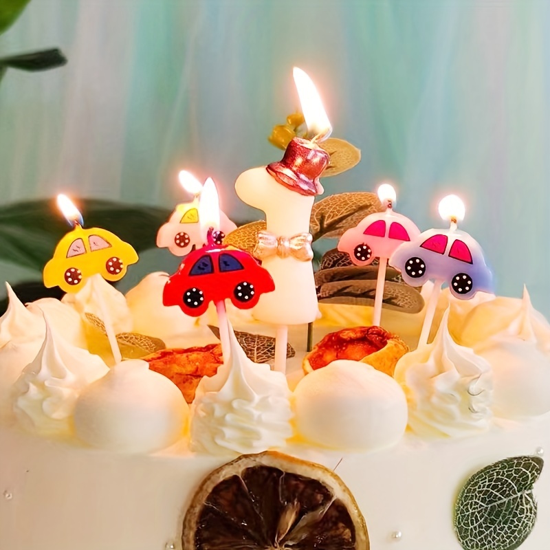 Turn any ordinary cake into a festive, fun centerpiece with these vibrant car-shaped candles – sure to bring smiles and spark excitement at every party!