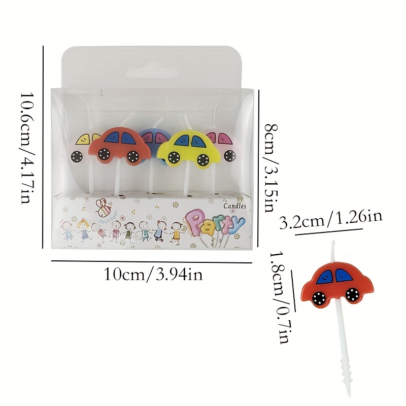 Add a fun twist to any celebration with these 5 colorful car-shaped birthday candles – the perfect cake toppers for kids’ parties, baby showers, and holiday events like Halloween and Christmas.
