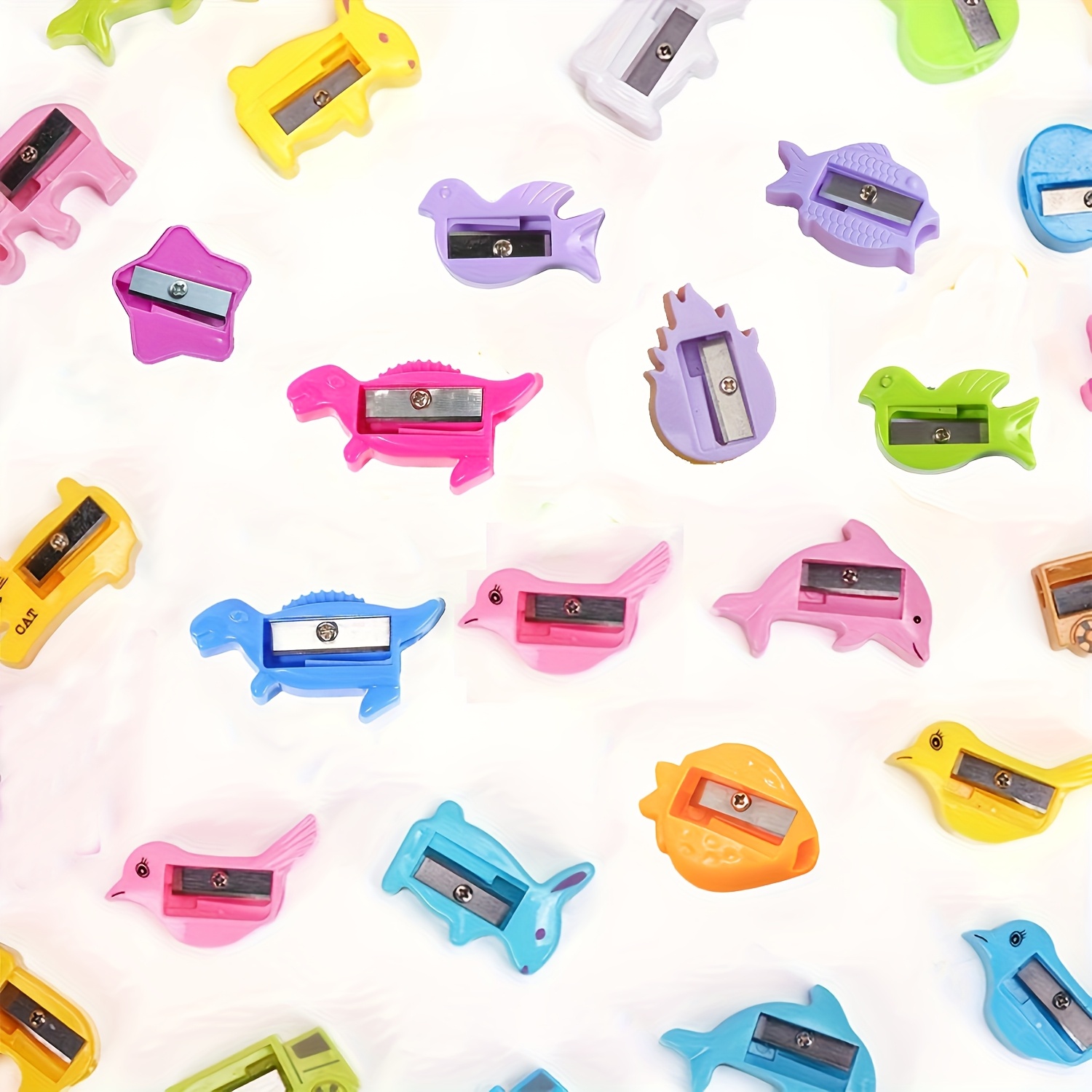 50 mini pencil sharpeners with fun cartoon animal designs