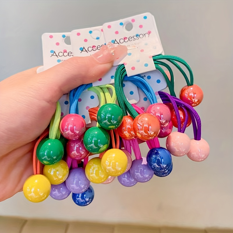 7pcs Stylish Candy Ball Hair Ties – Colorful Resin Bead Hair Bands for Teens & Daily Wear