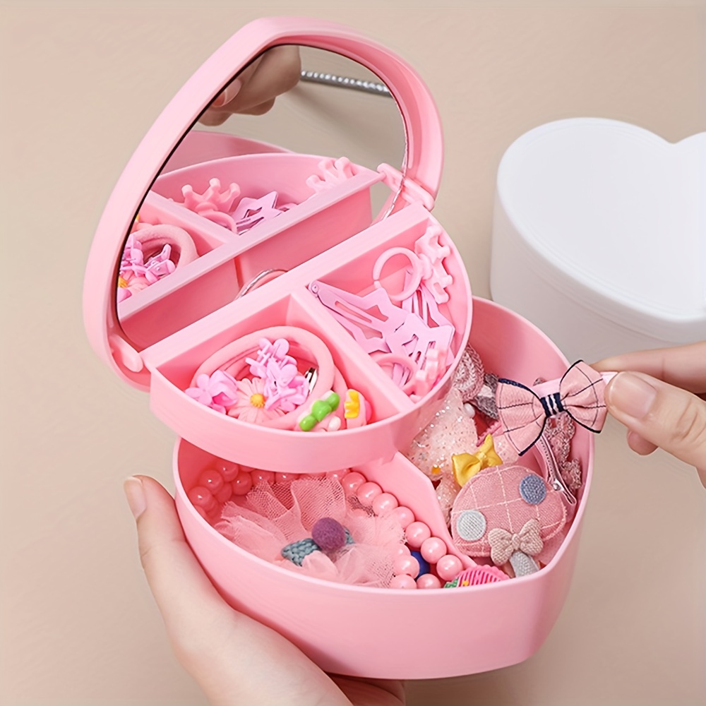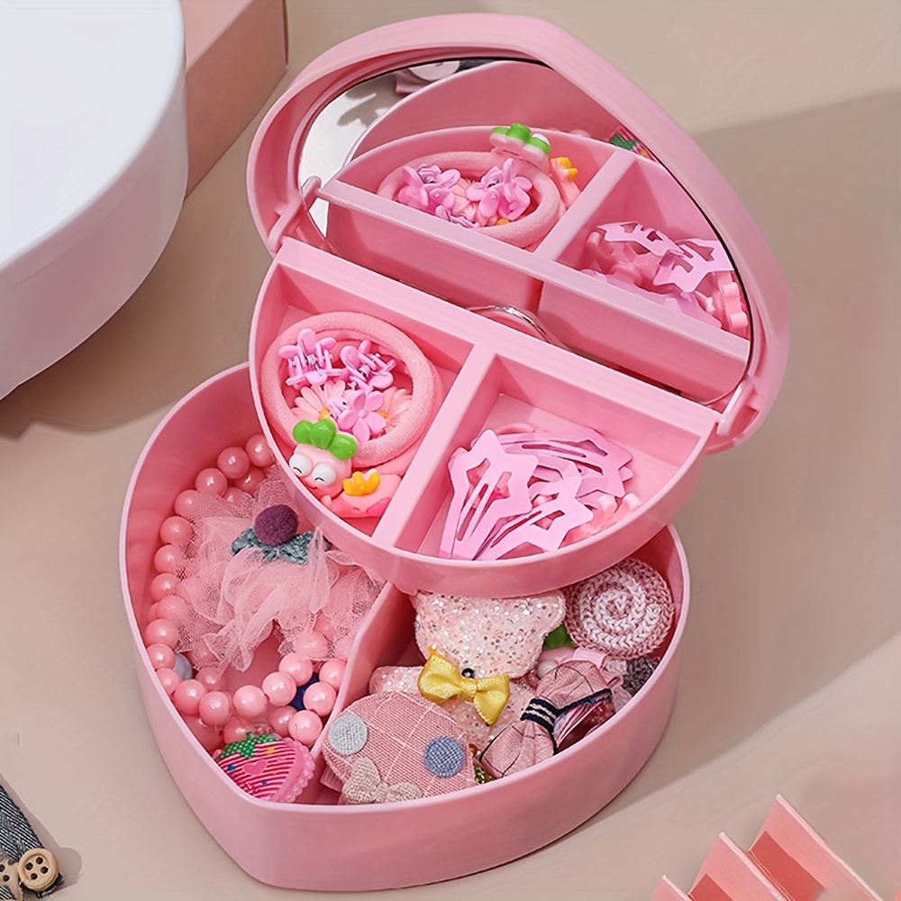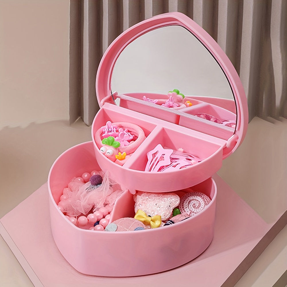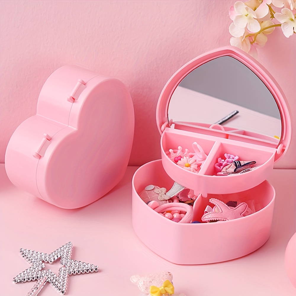 Charming Pink Heart-Shaped Double-Decked Mirror Storage Box – Elegant Jewelry & Accessory Organizer