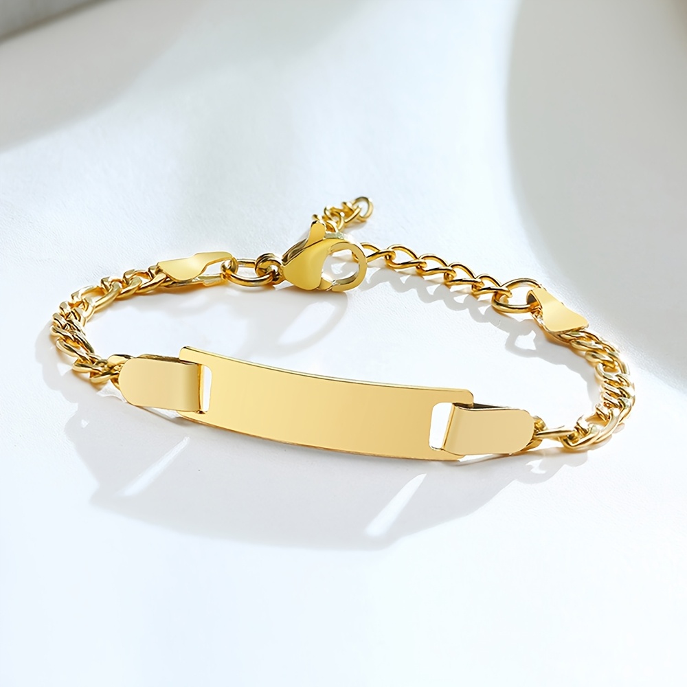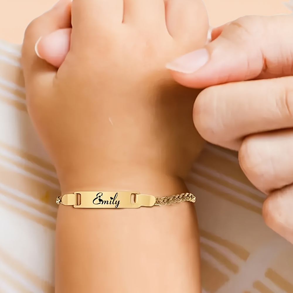 Celebrate your child with a timeless keepsake—this personalized nameplate bracelet is made from high-quality 304 stainless steel with a gold-tone finish and a French-inspired crown detail. Durable, tarnish-resistant, and designed to last, it’s a beautiful piece for sons or daughters that blends elegance with everyday wear.