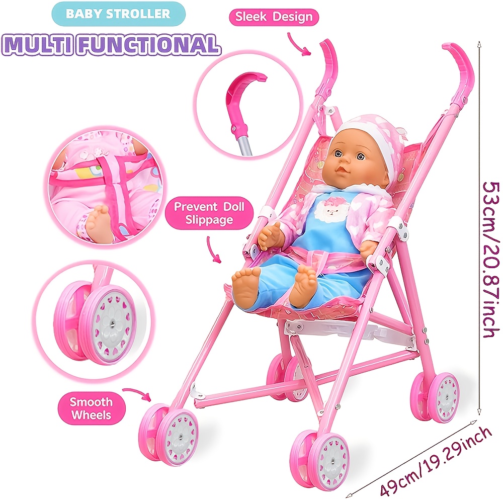 Encourage imaginative play and quality bonding time with this metal foldable umbrella-style doll stroller! Lightweight and easy to fold, itβs perfect for children to push their favorite dolls around, enhancing parent-child interaction and nurturing caring skills.