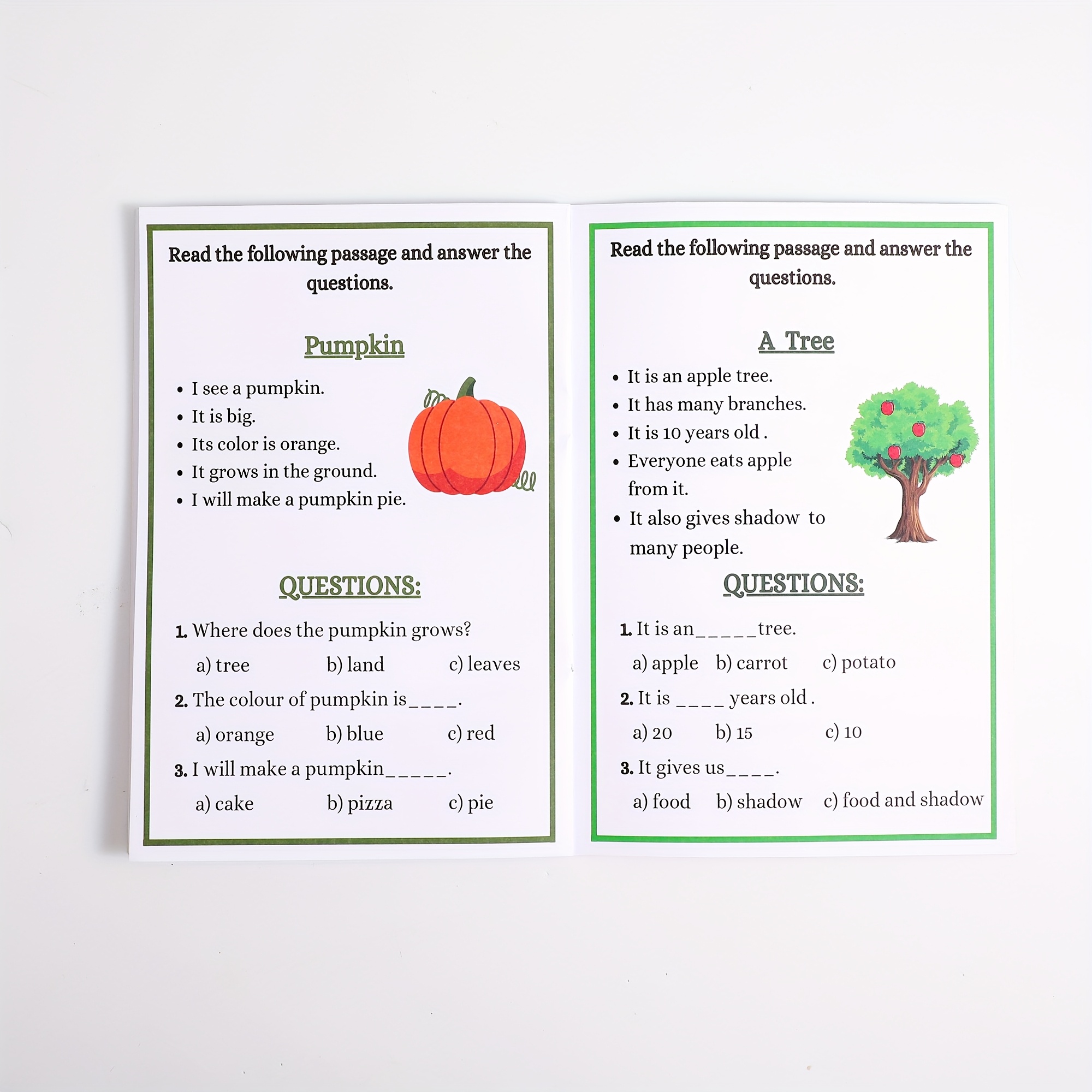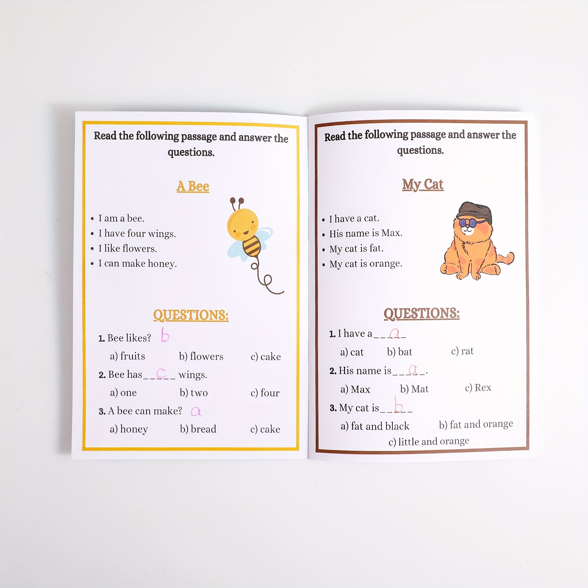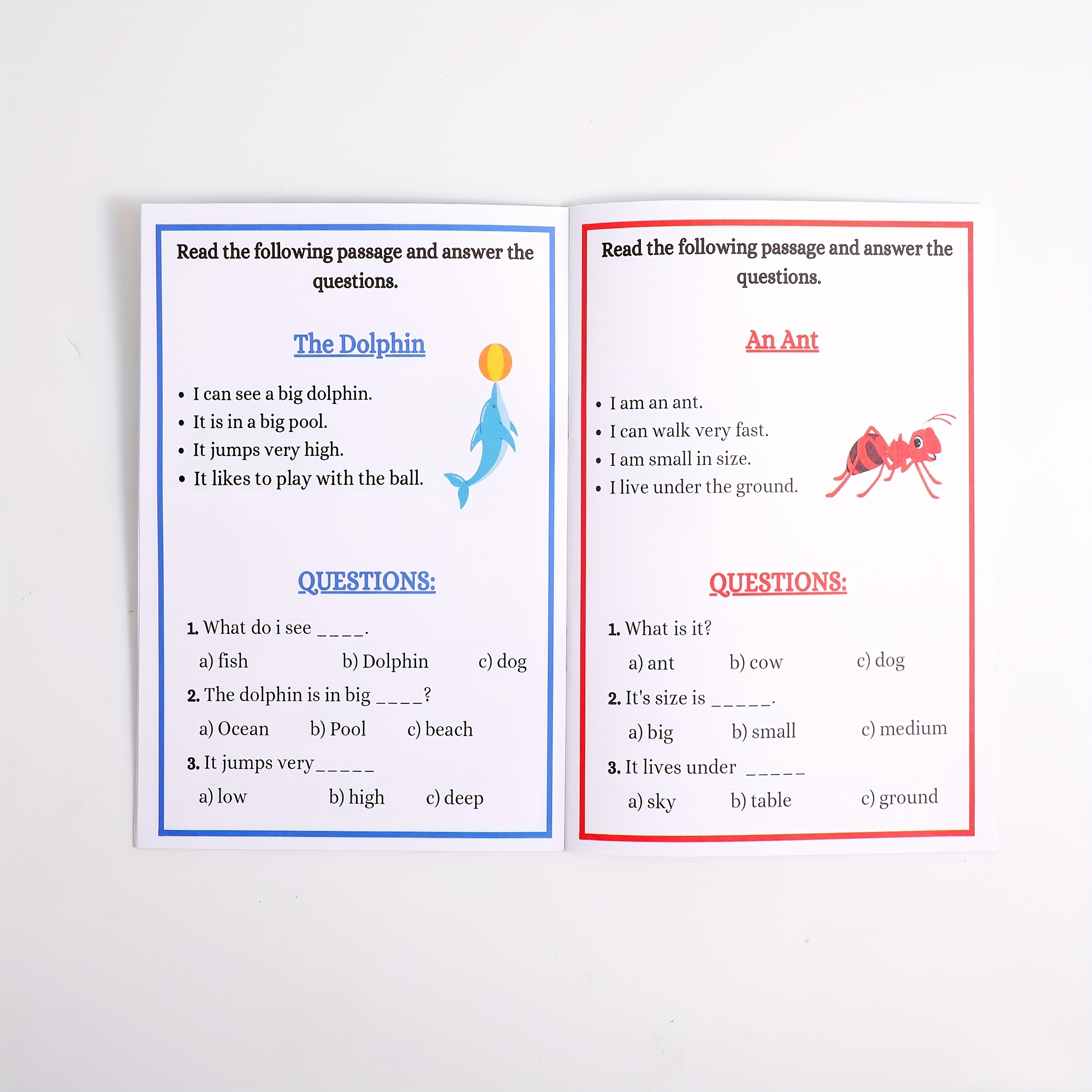Set your child up for learning success with this engaging 36-page reading comprehension workbook designed for young learners aged 3 to 6. Packed with fun short stories, interactive activities, and age-appropriate questions, this workbook helps boost early reading, writing, and critical thinking skills in an enjoyable and confidence-building way.