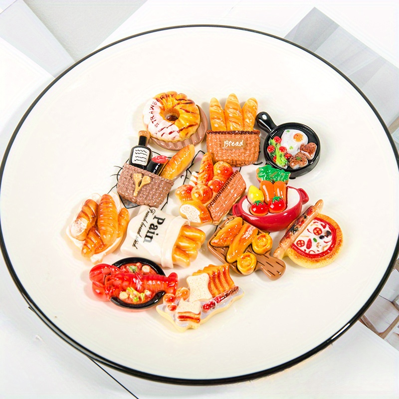 This 10-piece set of realistic miniature food decorations adds a fun and creative touch to any space. Featuring tiny handcrafted bakery items, pizzas, and breakfast sets, each piece is made from high-quality, lightweight resin with intricate details for a lifelike appearance. These miniatures are perfect for DIY crafts, café or kitchen displays, themed table setups, and festive décor. Safe and durable, they’re also great for kids’ imaginative play — helping spark creativity through pretend kitchen games or dollhouse fun. A thoughtful gift for food lovers, hobbyists, and children who enjoy creative role-play.