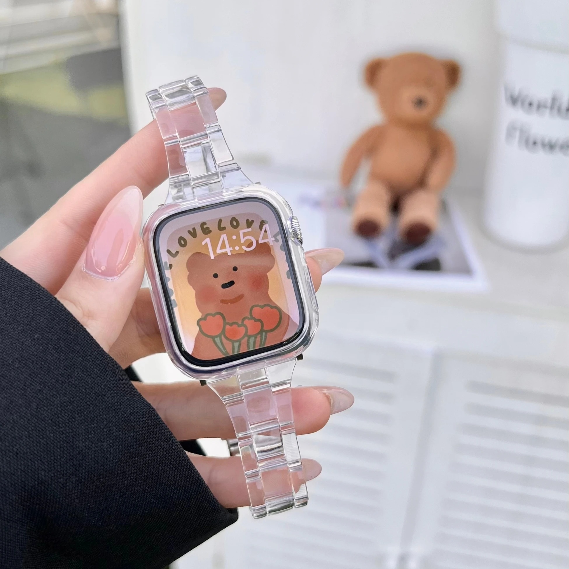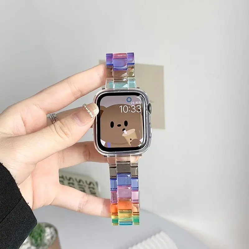 Here’s a clear and appealing product description for your Slim Transparent Strap for Apple Watch in rainbow color: