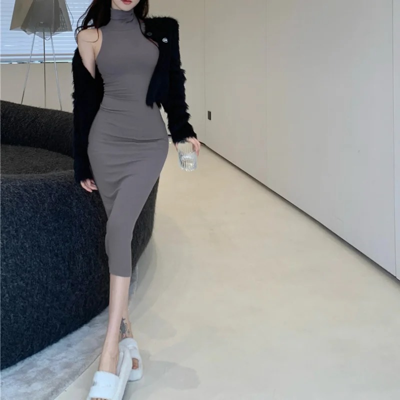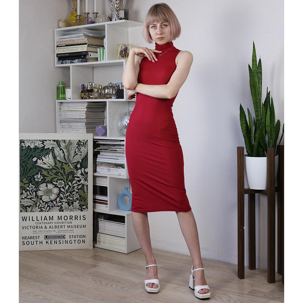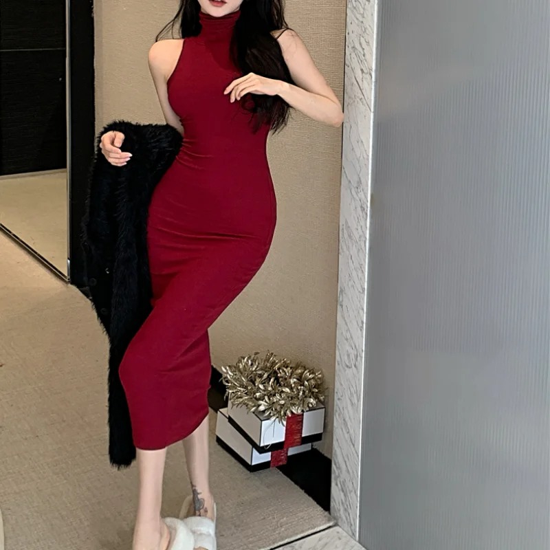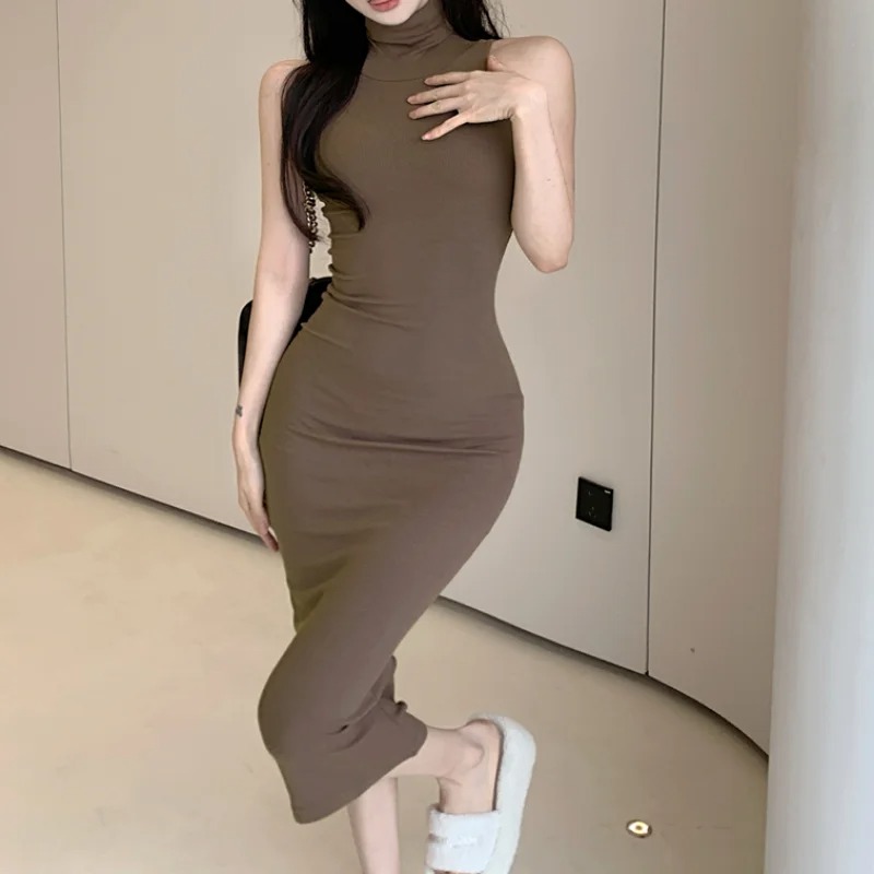 Turn up the heat this season with this Sexy Slim Turtleneck Sleeveless Dress – the ultimate statement piece for confident, fashion-forward women. Designed to hug your curves, this bodycon pencil dress features a sleek turtleneck, sleeveless cut, and a smooth, elastic fabric that enhances your silhouette.