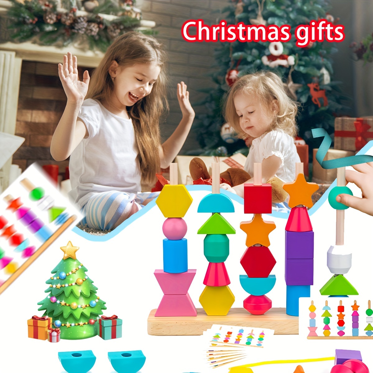 Stacking Blocks | Lacing Beads | Shape Matching Stacker | STEM Preschool Learning Toy