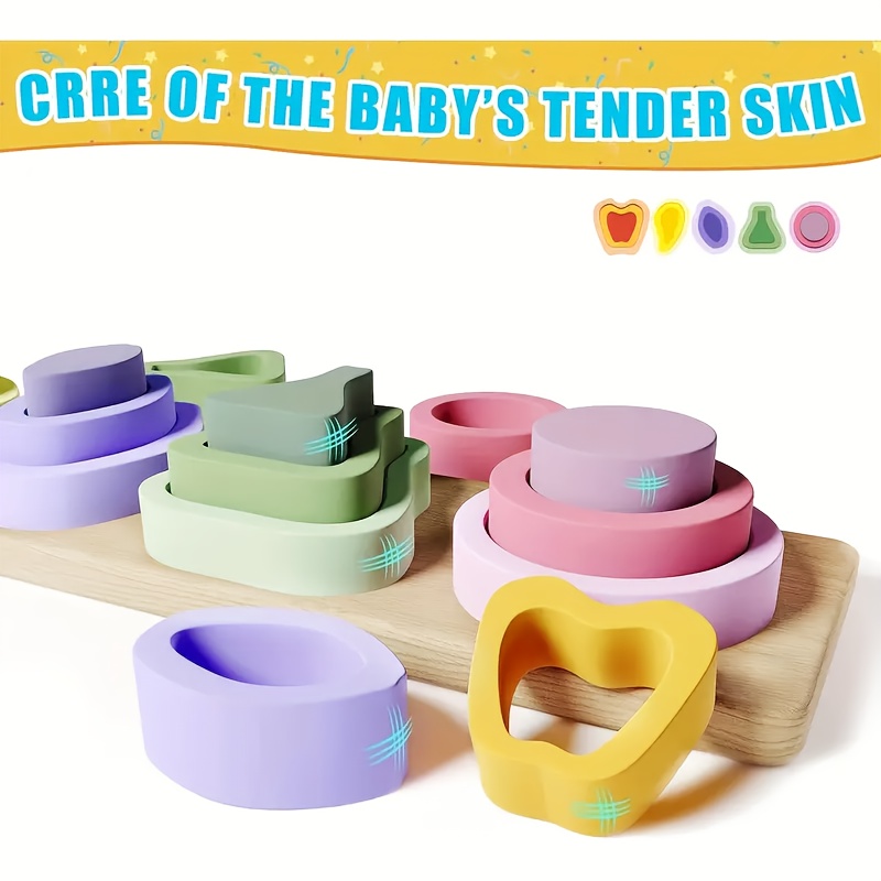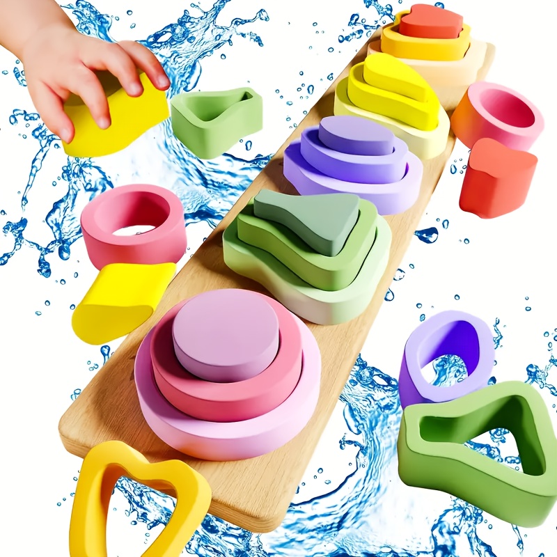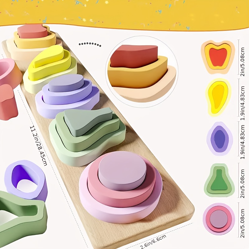 - 🔷 Shape & Color Recognition: Includes a variety of geometric shapes in vibrant colors for fun sorting and stacking.